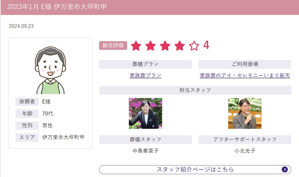 アイ・セレモニーをご利用頂いたお客様からのお言葉をご紹介させていただきます。