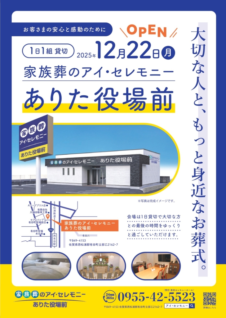 2025年12月 「家族葬のアイ・セレモニーありた役場前」オープンのお知らせ