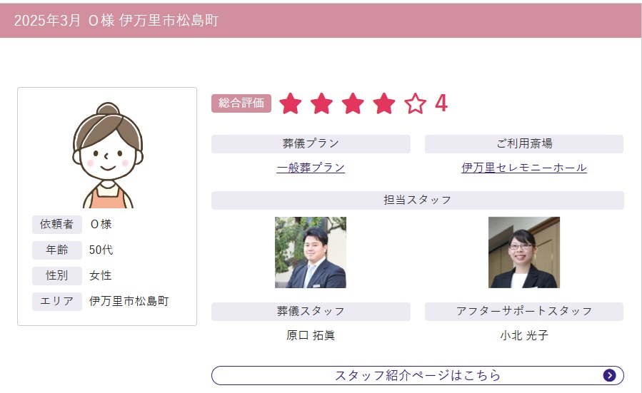 佐賀県伊万里市、有田町のご葬儀ならアイ・セレモニー 【公式】 > 式場案内 > 伊万里市の式場案内 > 伊万⾥セレモニーホール > 伊万里セレモニーホールのお客様の声