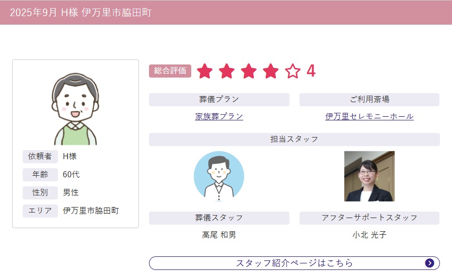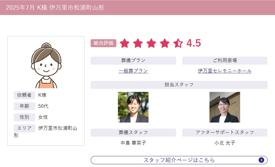 アイ・セレモニーをご利用頂いたお客様からのお言葉をご紹介させていただきます。